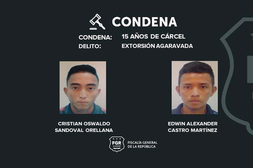 Dos pandilleros extorsionistas de la MS recibieron 15 años de cárcel, cada uno.