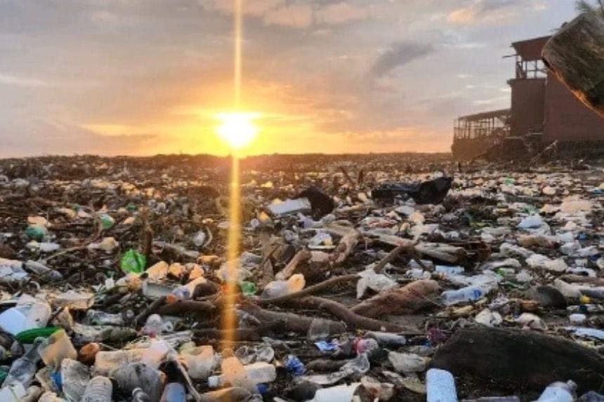 Una parte de la playa de Acajutla, en Sonsonate, está rodeada de basura que fue arrastrada por las fuertes lluvias registradas en los últimos días en el país.