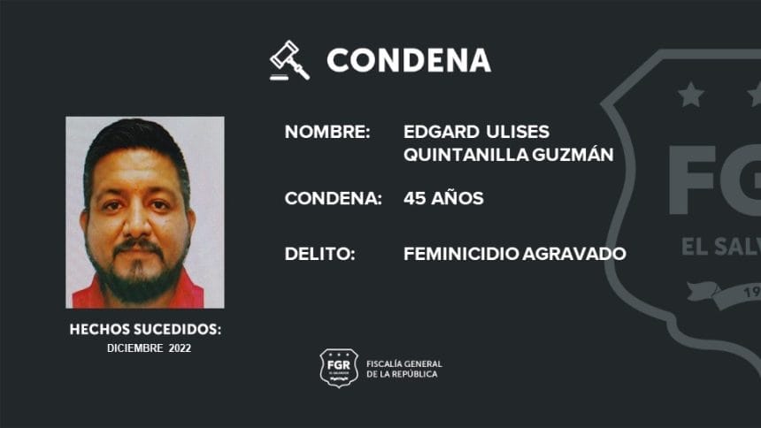Edgard Quintallina fue condenado a 45 años de cárcel por asesinar a su compañera de vida luego de dispararle con un arma de fuego, informó la FGR.
