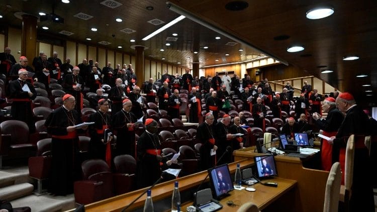 El director de la Oficina de Prensa de la Santa Sede, Matteo Bruni, informó que durante la sesión se leyeron los primeros 23 párrafos de la constitución apostólica Universi Dominici Gregis, seguida por una conversación inicial sobre la situación de la Iglesia y su papel en el mundo contemporáneo.