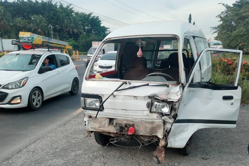 Cuatro personas resultaron lesionadas la mañana de este martes en un accidente de tránsito ocurrido en el kilómetro 36 de la carretera Panamericana Este a la altura de Residencial Ciudad Versailles.