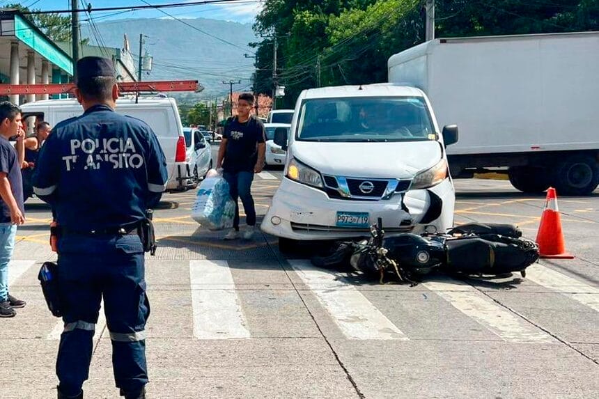 Según información compartida por la Policía Nacional Civil (PNC), el conductor de la motocicleta impactó contra un vehículo tipo panelito, lo que le provocó diversas lesiones. Equipos de socorro acudieron al lugar y brindaron atención inmediata al afectado, quien fue trasladado a un centro hospitalario para recibir atención médica especializada.