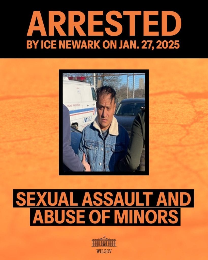 La Casa Blanca reportó entre las casi mil capturas del lunes, que entre los criminales destacados estaba Edgar Julca Tangoa, de nacionalidad peruana, quien fue arrestado por ICE Newark el 27 de enero de 2025. Este sujeto tenía notificación roja de la INTERPOL por los delitos de agresión sexual agravada y abuso de varios menores en Argentina.