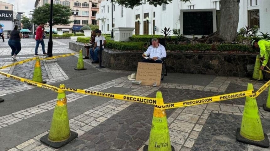 Sentado en una silla en el parque central de San Pedro Sula y con un rótulo frente a sus piernas, el alcalde de San Pedro Sula, Roberto Contreras, se declaró en huelga de hambre exigiendo al gobierno central el pago de fondos destinados para la comuna.