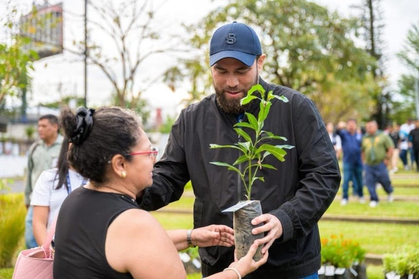 ALCALDE DE SAN SALVADOR CENTRO IMPULSA «CIUDAD MÁS VERDE» CON ENTREGA MASIVA DE ÁRBOLES