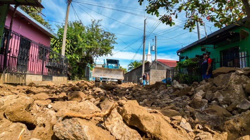 La alcaldía de Santa Ana Centro continúa mejorando la red vial, ahora centrado en la calle principal de la Colonia Santa Marina, en el cantón Primavera.