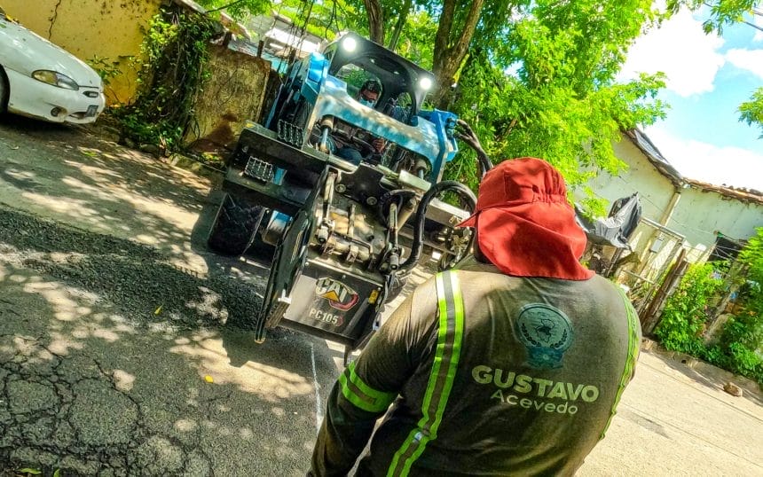 Una parte de los trabajos para mejorar el estado de las calles que tiene activada la gestión del alcalde, Gustavo Acevedo, se hace en la calle La China del sector de la colonia Lamatepec.