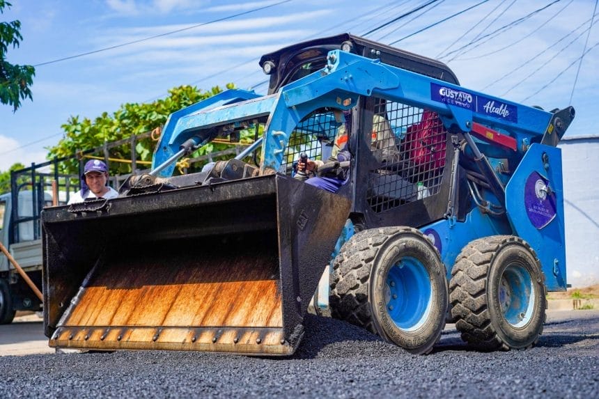 La alcaldía de Santa Ana ejecuta trabajos de bacheo en la colonia España, donde se colocan 40 toneladas de asfalto para mejorar la circulación vehicular y la seguridad en la zona.