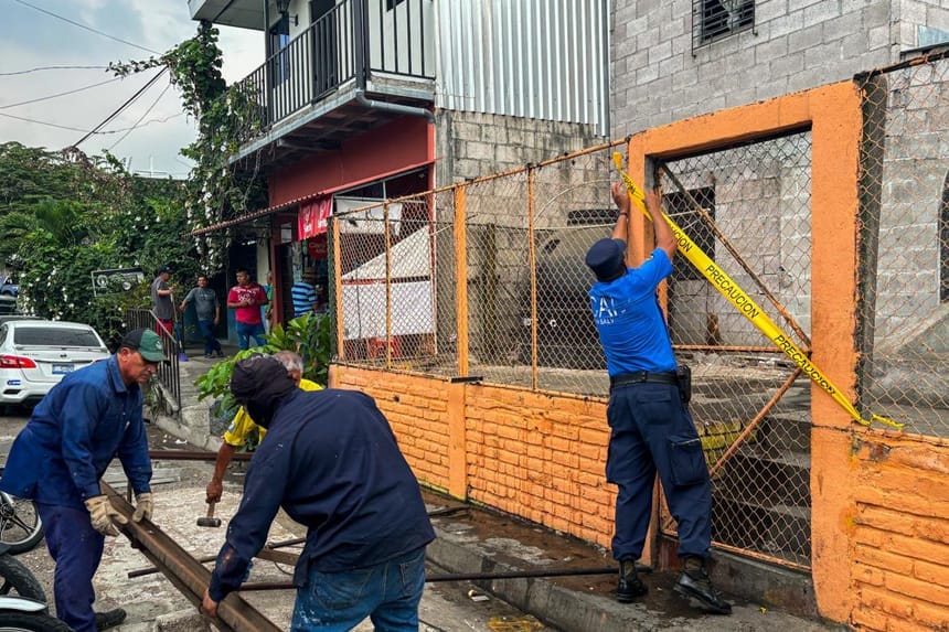 La alcaldía de San Salvador Centro ejecuta acciones para la recuperación de áreas verdes y aceras, en la comunidad Corazón de María, zona 3, del distrito San Salvador capital.