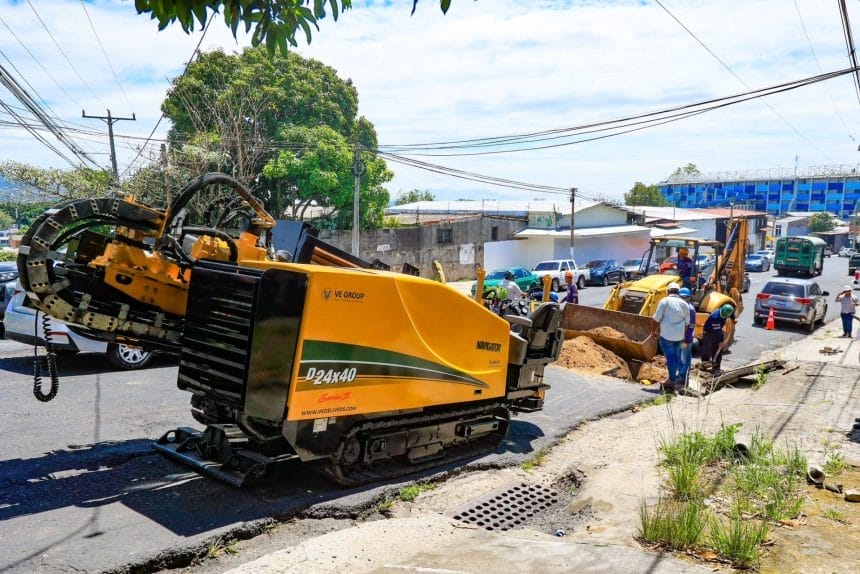 Actualmente, los trabajos se desarrollan frente al estadio Cuscatlán, donde el equipo de perforación ya está ejecutando un cuadrante estratégico. La intervención contempla la instalación de una nueva tubería de mayor diámetro en la etapa final, mientras que se inició con una de menor tamaño para agilizar los avances.