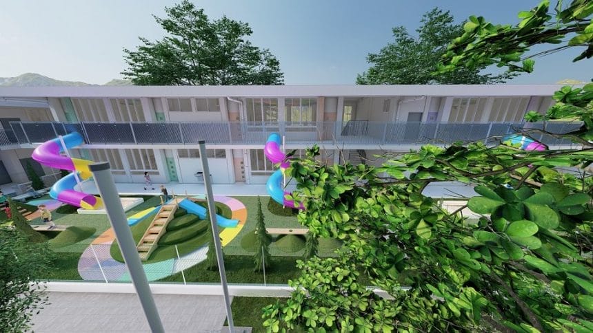 Estas acciones también forman parte del Programa de Mejora de la Calidad y Cobertura Educativa: Nacer, Crecer, Aprender, que impulsa la Primera Dama de la República, Gabriela de Bukele, por lo que también contará con un acceso de ingreso inclusivo con rampas, así como diversas superficies de piso como: porcelanato, adoquines, grama natural, grama sintética y superficies de caucho antideslizante, estas dos últimas para las zonas de juegos.