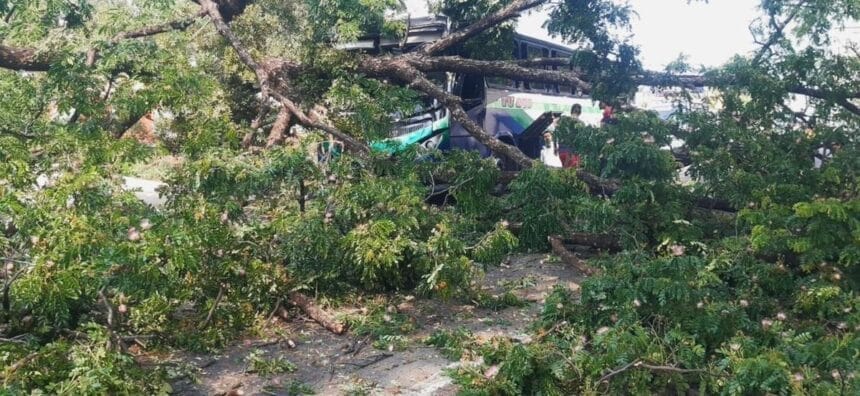 Reading: ÁRBOL DE GRANDES PROPORCIONES CAE SOBRE AUTOBÚS EN SAN MIGUEL