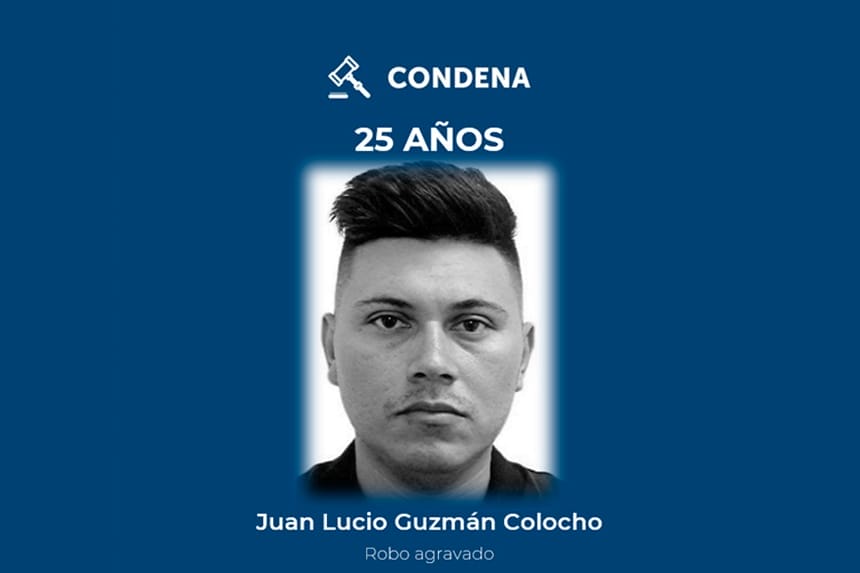 La Fiscalía General de la República logró que Juan Lucio Guzmán Colocho fuera condenado a 25 años de prisión por el delito de robo agravado.