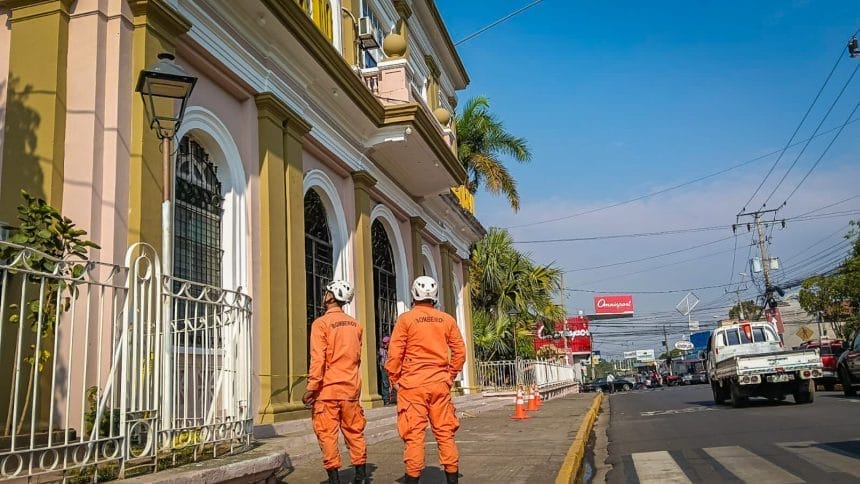 Elementos de Cuerpo de Bomberos realizaron un monitoreo preventivo en la parroquia Santa Catarina de Alejandría, ubicada en la 2.ª avenida Norte de Usulután, luego del sismo registrado en la zona.