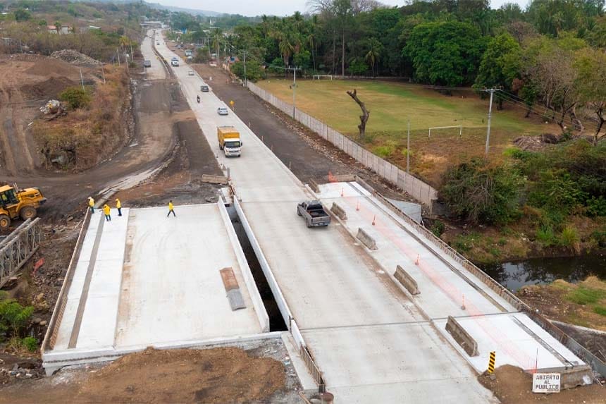 El Ministerio de Obras Públicas informó sobre el avance los trabajos de ampliación a cuatro carriles de la carretera «Camino a SurfCity», en el sector del Puerto de La Libertad, municipio de La Libertad Costa,