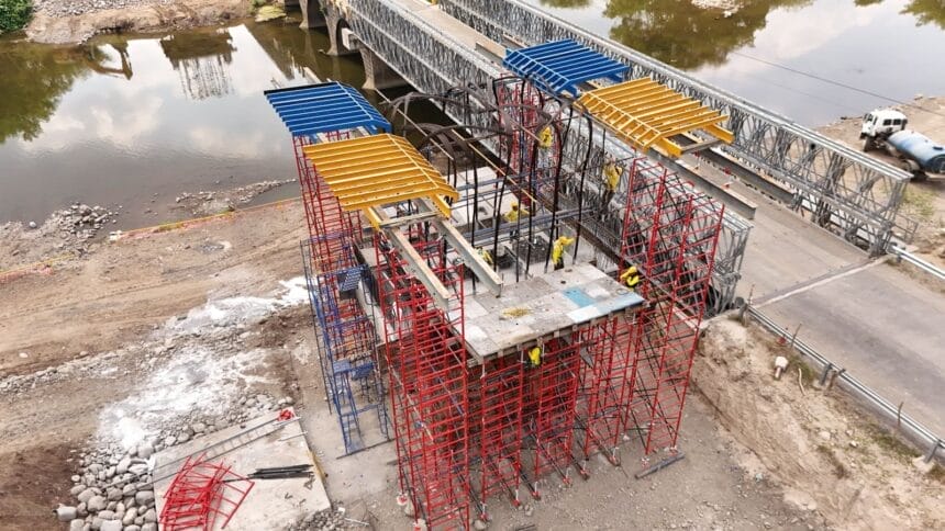 Este miércoles 16 de abril, el Ministerio de Obras Públicas compartió un adelanto sobre el avance en la construcción del puente de concreto permanente sobre el río Titihuapa, entre San Ildefonso, San Vicente, y Ciudad Dolores, Cabañas, tras el colapso de la estructura anterior debido a las fuertes corrientes generadas por la tormenta Julia, en octubre 2022.