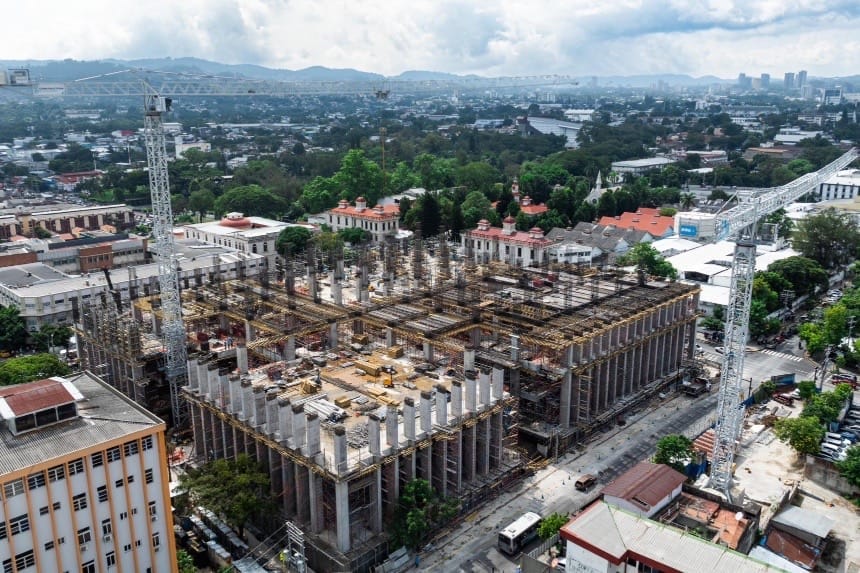 Equipos de la Dirección de Obras Municipales (DOM) avanzan en la construcción del nuevo Hospital Rosales, una de las obras más importantes en el sistema de salud público de El Salvador.