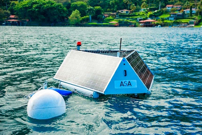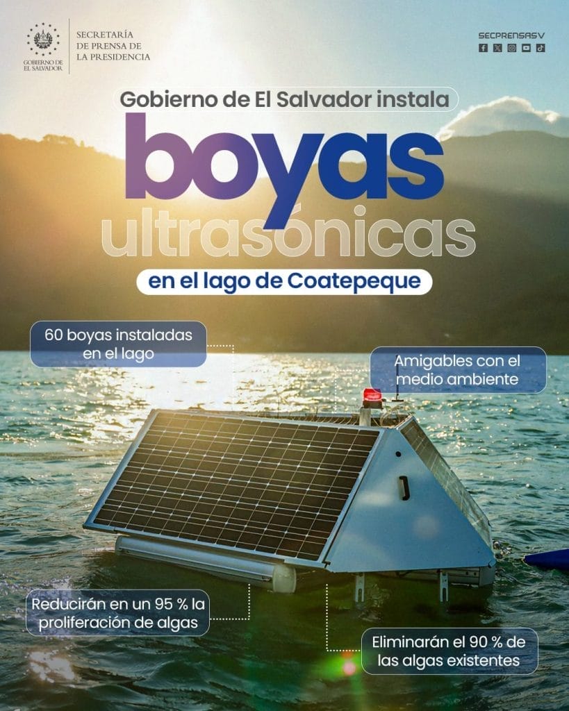 Las 60 boyas instaladas, que no solo marcaron un hito histórico, convirtiendo a El Salvador en el primer país que coloca esta cantidad en un cuerpo de agua a nivel mundial, utilizan un sistema que emite un ultrasonido de unos 500 metros alrededor dando paso a que se inhiba la reproducción de cianobacterias que causan el mal olor, el color oscuro y la contaminación.