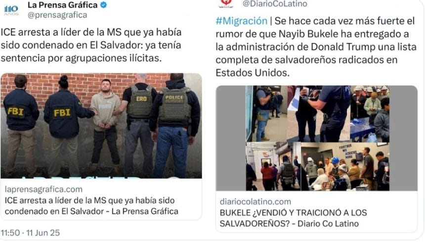 La Prensa Gráfica publicó la captura del pandillero José Eliseo Amaya Palacios con una condena en El Salvador. La segunda publicación es otra de Diario CoLatina donde la fuente de información es explícitamente un «rumor».