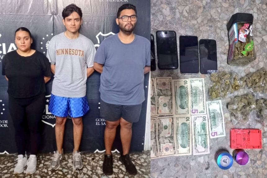 Según las autoridades, al momento de la captura se les incautó: varias porciones de marihuana, $120 en efectivo, 2 trituradoras de droga, 1 balanza digital, 1 vehículo y 4 celulares.