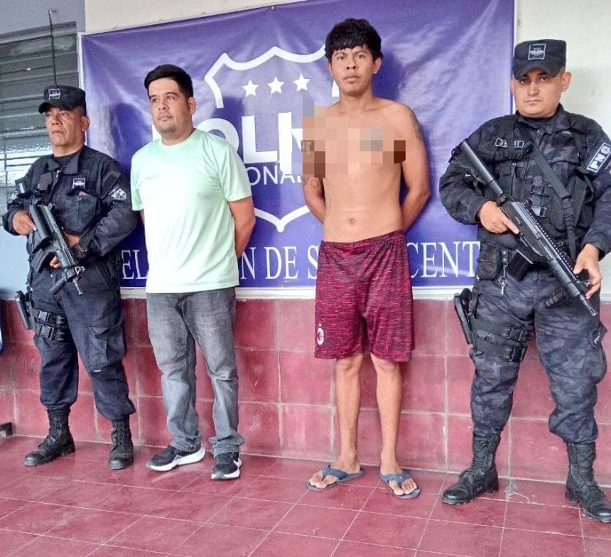 Con orden de la Fiscalía General de la República (FGR), elementos de la Policía Nacional Civil (PNC), capturaron en la colonia Espiga de Oro, de San Vicente a los dos sujetos, uno de ellos fue identificado como pandillero.