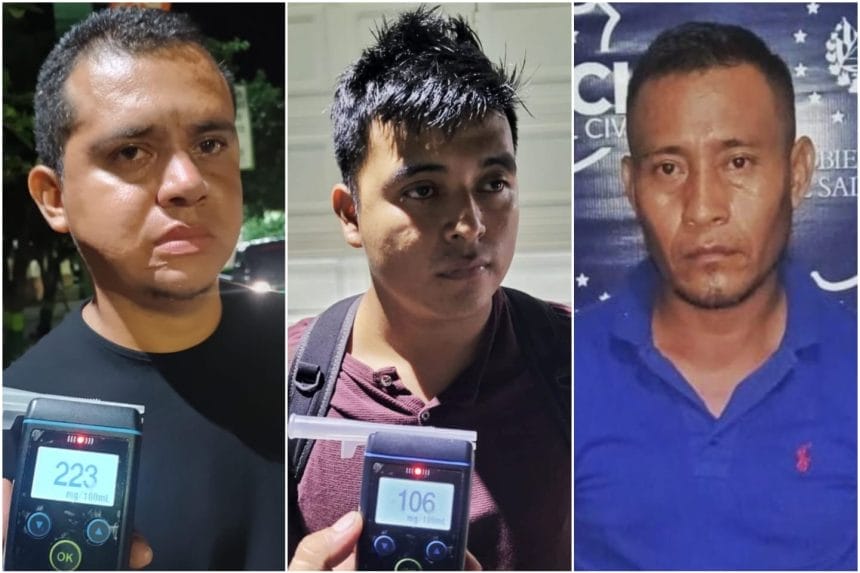 La Policía Nacional Civil informó sobre la captura de tres conductores que fueron sorprendidos manejando bajo los efectos del alcohol en distintos puntos del país, poniendo en riesgo su vida y la de otras personas.