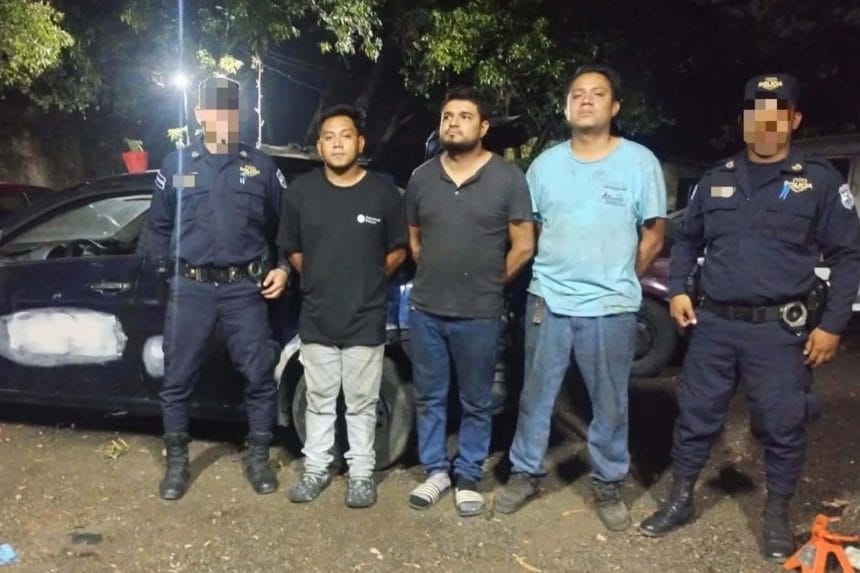 La Policía Nacional Civil reportó la captura en flagrancia de tres sujetos acusados de intentar traspasar ilegalmente a su nombre un vehículo alquilado, en un caso que evidencia la respuesta de las autoridades ante delitos patrimoniales y mecanismos de fraude.