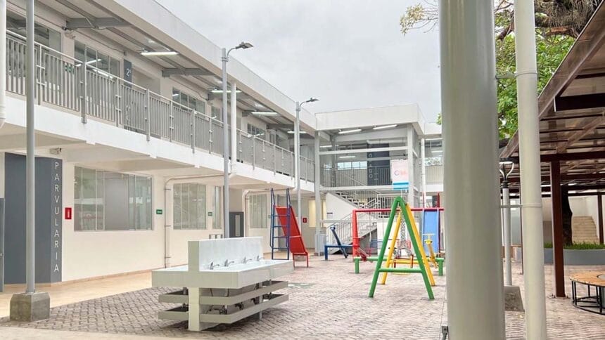Los trabajos iniciaron con demoliciones de la infraestructura existente, donde posteriormente se construirán tres módulos de aulas; dos de estos a dos niveles con áreas recreativas independientes, enfermería, administración, salón de usos múltiples, una cubierta termoacústica en todos los módulos o salones, ventiladores, luminarias LED y un sistema fotovoltaico en cubierta de techo.