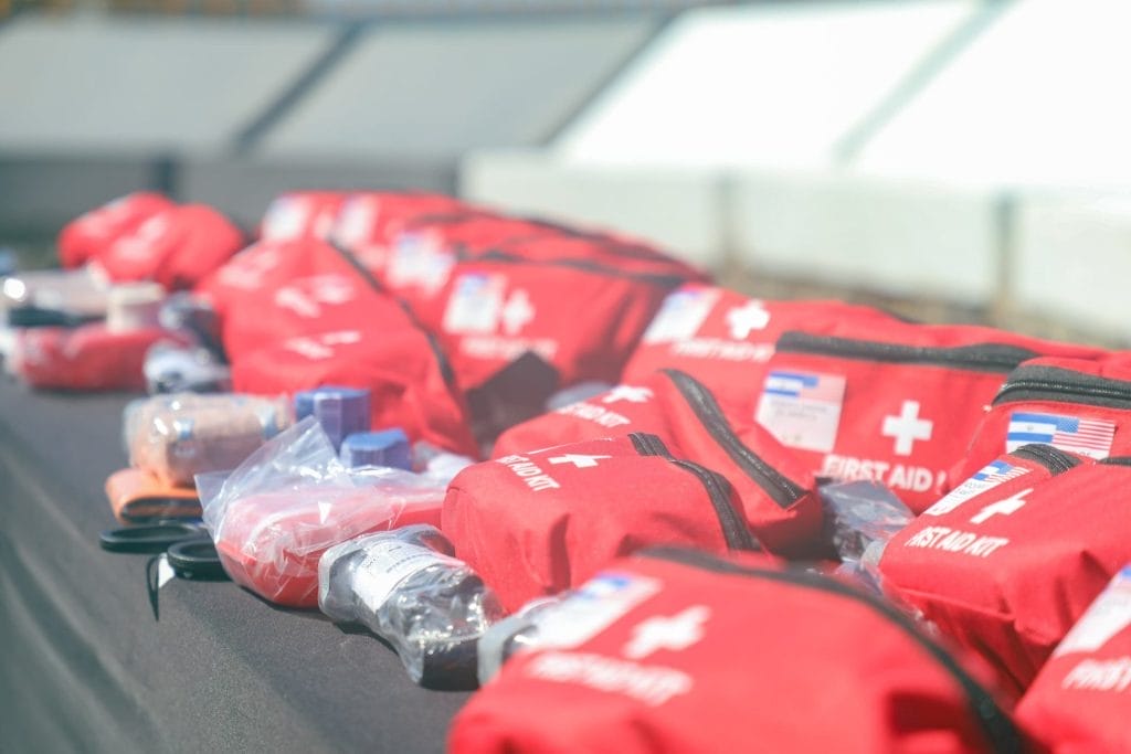 Los kits poseen gasas, bandas elásticas, tijeras para trauma, rollos de gasa de 2 pulgadas, torniquete CAT Gen 7, entablillador, cinta de primeros auxilios y cangureras; las tijeras especiales para trauma ayudan a realizar el corte de vendas o cubrir heridas que junto a las gasas de 2 pulgadas son herramientas que podrán emplearse en torniquetes tácticos, que detendrían hemorragias en miembros inferiores o superiores.