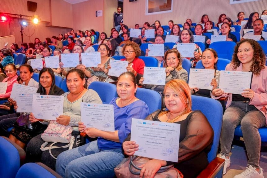El Gobierno de El Salvador, con el apoyo de la Unión Europea y la Agencia Española de Cooperación Internacional para el Desarrollo (AECID), celebró la graduación del diplomado «Mujer y Negocios», un programa que benefició a 126 emprendedoras de 11 municipios del país.
