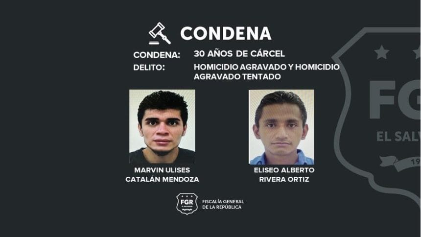 La primera víctima murió luego de varios disparos, mientras que la segunda víctima recibió un impacto de bala en su rostro, de la cual logró sobrevivir. La condena fue impuesta por el Tribunal Primero de Sentencia de Santa Tecla.