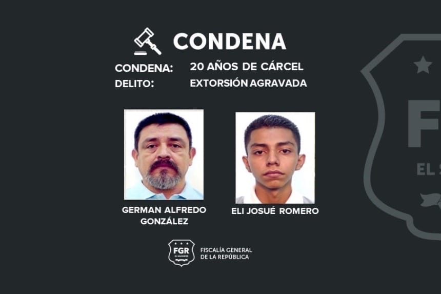 German González y Elí Romero fueron condenados a 20 años de prisión por extorsionar a un comerciante en San Miguel.
