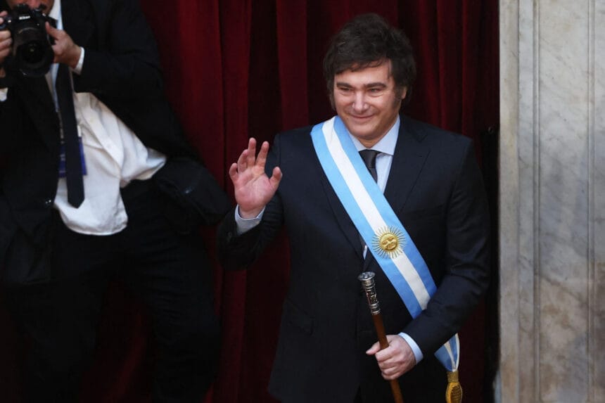 Cuando el libertario tomó el poder de Argentina en diciembre de 2023, el presidente Bukele envió en su representación a su ministra de Economía, María Luisa Hayem y el Ministro de Justicia y Seguridad, Gustavo Villatoro.