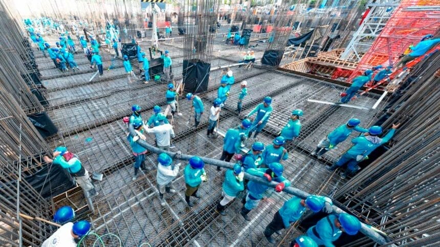 El fin de semana pasado, los equipos de Obras Municipales hicieron el colado de más de 3,000 metros cúbicos de concreto en el sótano uno. El nuevo centro médico tendrá 87 consultorios y 44 salas de procedimientos disponible para la atención de la salud de calidad de los salvadoreños.