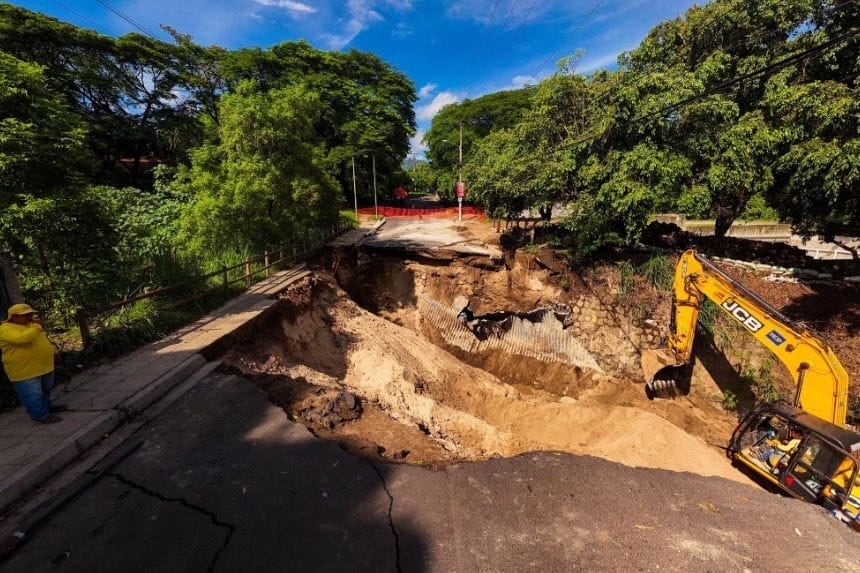 El Ministerio de Obras Públicas (MOP) informó que ya se iniciaron los trabajos para la construcción de un nuevo puente en el sector de Villa Lourdes, en el municipio de Colón, departamento de La Libertad, luego del colapso de la estructura anterior debido a las fuertes lluvias recientes.