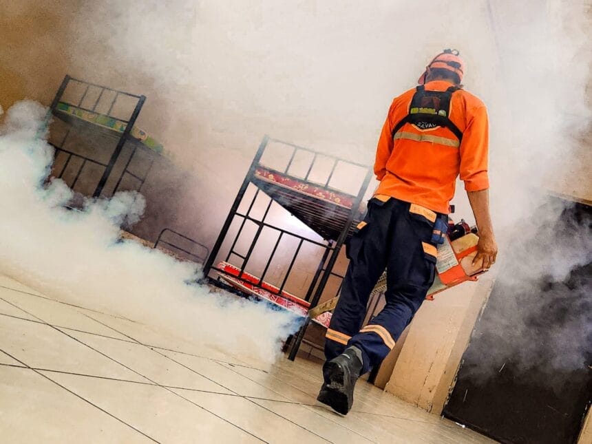 Como parte de las acciones preventivas ante la #AlertaNaranja, equipos de Protección Civil Municipal de la Alcaldía de San Salvador Centro, realizan fumigación en los 63 albergues qué el alcalde Mario Durán ha habilitado en toda la ciudad para asegurar que estén listos y seguros para recibir a las personas que se encuentren en situaciones de alto riesgo.