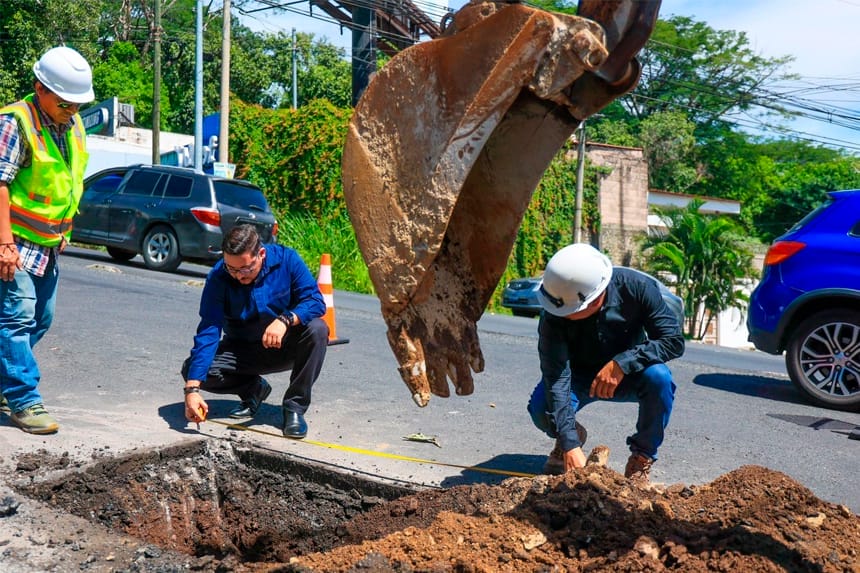El viceministro de Transporte, Nelson Reyes, informó que los trabajos de reestructuración de tuberías en la calle antigua a Huizúcar se están desarrollando en coordinación con la Administración Nacional de Acueductos y Alcantarillados (ANDA) y el Viceministerio de Transporte (VMT).