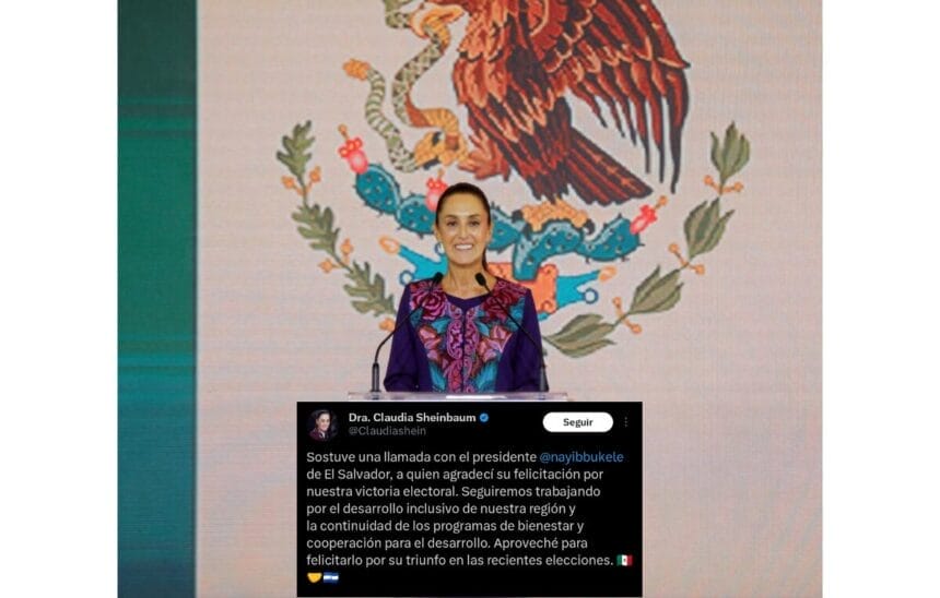 «Sostuve una llamada con el presidente Nayib Bukele de El Salvador, a quien agradecí su felicitación por nuestra victoria electoral», indicó la primer mujer en ser elegida democraticamente coml presidente de México.