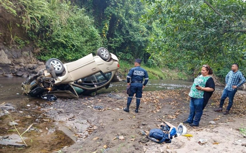 La Policía Nacional Civil informó que el conductor de un vehículo tipo sedán perdió el control del volante y terminó cayendo cerca de un río, a la altura del kilómetro 39 de la carretera Panamericana, en el sentido que conduce de Santa Ana hacia San Salvador.