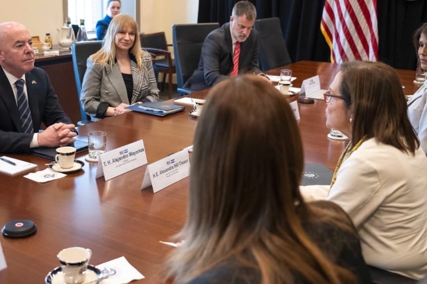 La Canciller Alexandra Tinoco, sostuvo una reunión con el Secretario de Homeland Security, Alejandro Mayorkas , y la Subsecretaria, Kristie Canegallo, con quienes dialogó sobre temas de cooperación en materia de seguridad regional y migración, con el fin de seguir abordando desafíos comunes.