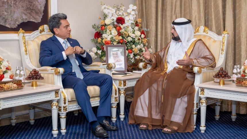 El Embajador de El Salvador en los Emiratos Árabes Unidos sostuvo una reunión con Su Alteza el Jeque Mohammed bin Hamad Al Sharqi, Príncipe Heredero del Emirato de Fujairah, en un encuentro que reafirma los sólidos lazos diplomáticos entre ambas naciones.