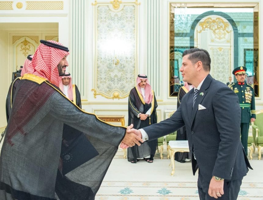 Hoy presenté mis Cartas Credenciales a Su Alteza Real el Príncipe Heredero Mohammed Bin Salman, formalizando mi acreditación como primer Embajador de El Salvador en Arabia Saudita.
