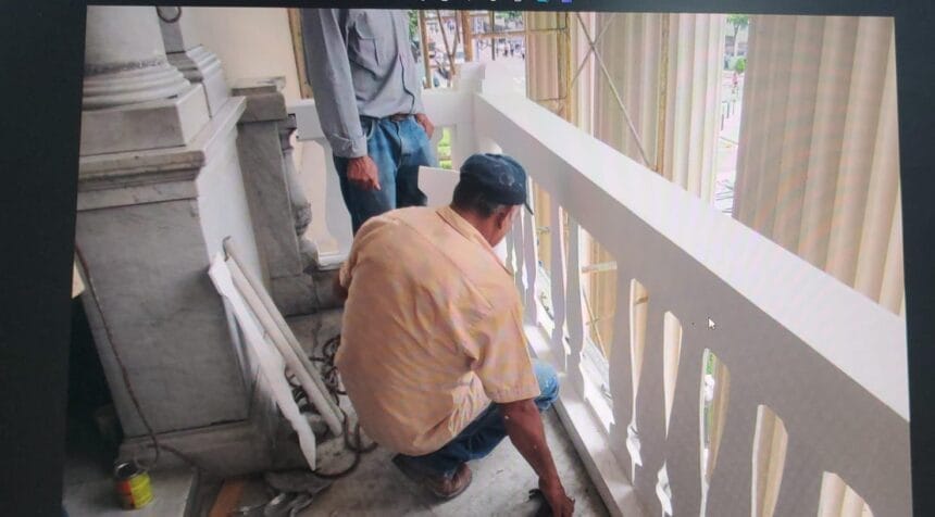 En ese sentido, el Palacio Nacional ubicado sobre la avenida España frente a la Plaza Gerardo Barrios, es uno de los edificios más emblemáticos e icónicos del área que actualmente está siendo intervenida en partes importantes como los balcones del frontispicio y sus interiores.
