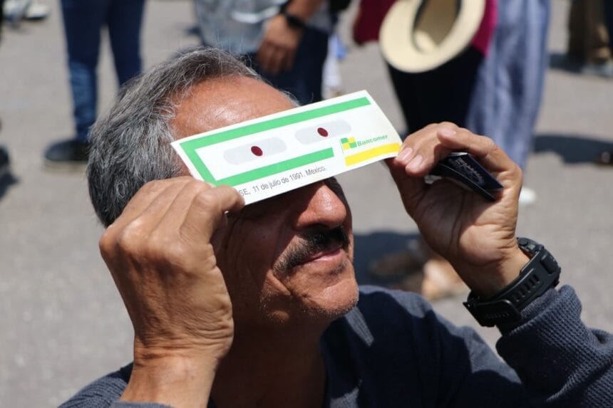 Don Sergio Sánchez, un mexicano se hizo viral por utilizar durante el eclipse solar, los mismos lentes protectores que usó en el de 1991.