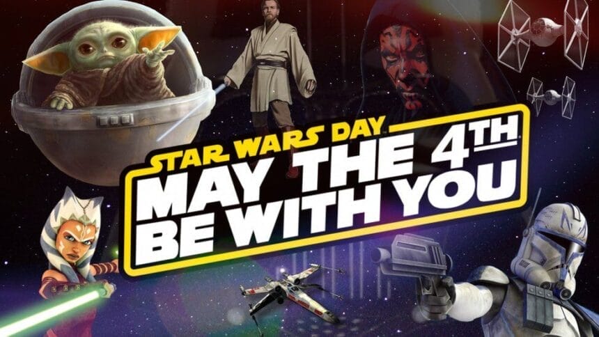 El nombre «Día de Star Wars» se debe a una similitud fonética de la frase «May the 4th (fourth) be with you» (Que el 4 de mayo te acompañe en español) y que en inglés se pronuncia casi igual que «May the force be with you» (Que la fuerza te acompañe), lema que ha resonado en los corazones de los seguidores de la franquicia.