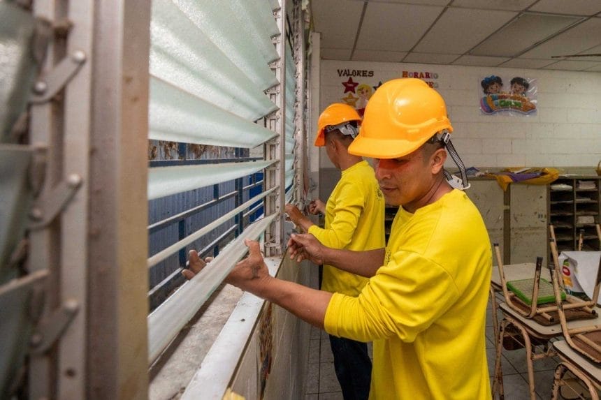De acuerdo con la información, los trabajos incluyen la renovación de espacios interiores y exteriores, así como mejoras en el sistema de iluminación, servicios sanitarios y ventilación dentro del centro educativo.