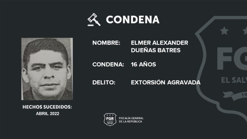 Elmer Alexander Dueñas Batres extorsionó a una víctima y la amenazó con privar de libertad a su compañero de vida si no pagaba $200. Estaba destacado en el puesto Santa Ana Norte.