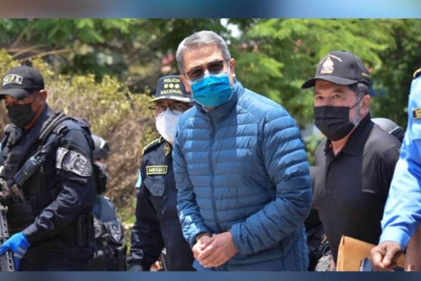 Hernández fue arrestado en su hogar en Honduras en febrero de 2022, esposado de pies y manos, y en abril extraditado a EEUU, gracias a un acuerdo de extradición concluido durante su gobierno. Solo habían pasado tres meses desde que concluyó su segundo mandato.