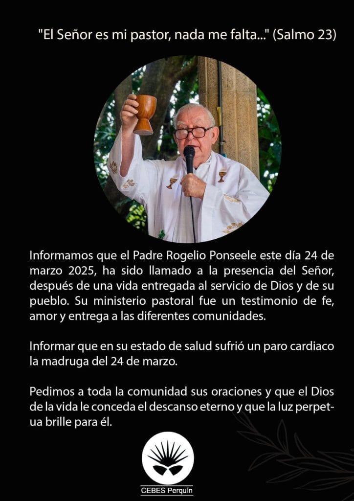 A través de un comunicado, CEBES Perquín informó sobre su deceso y pidió a la comunidad que se uniera en oración por el eterno descanso del sacerdote.
