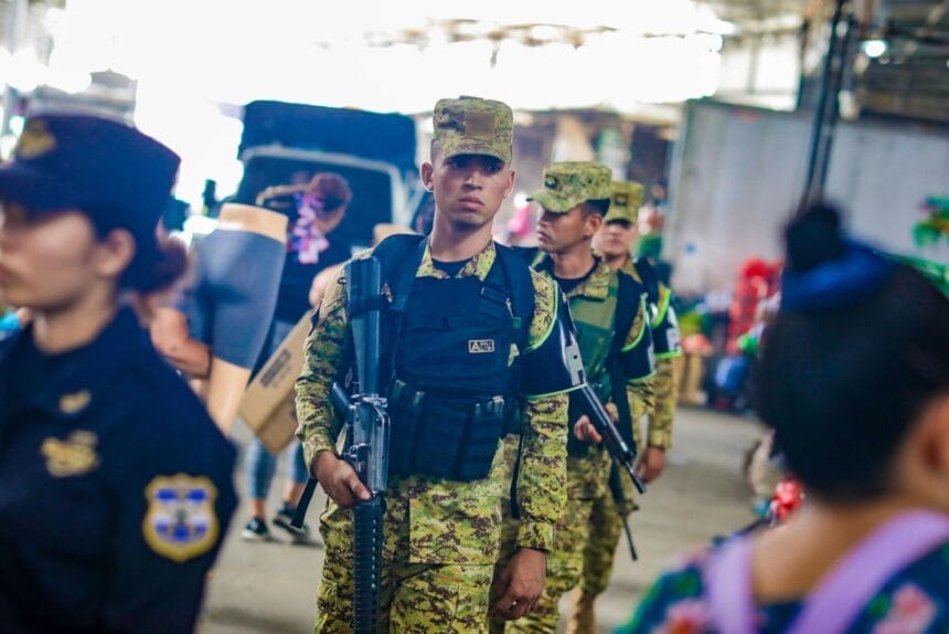 Elementos de la Fuerza Armada apoyaron el operativo realizado en el mercado de mayoreo La Tiendona, San Salvador, con el fin de limpiar y capturar a los residuos de pandillas que ponga en riesgo la seguridad de comerciantes y usuarios que lo visitan.